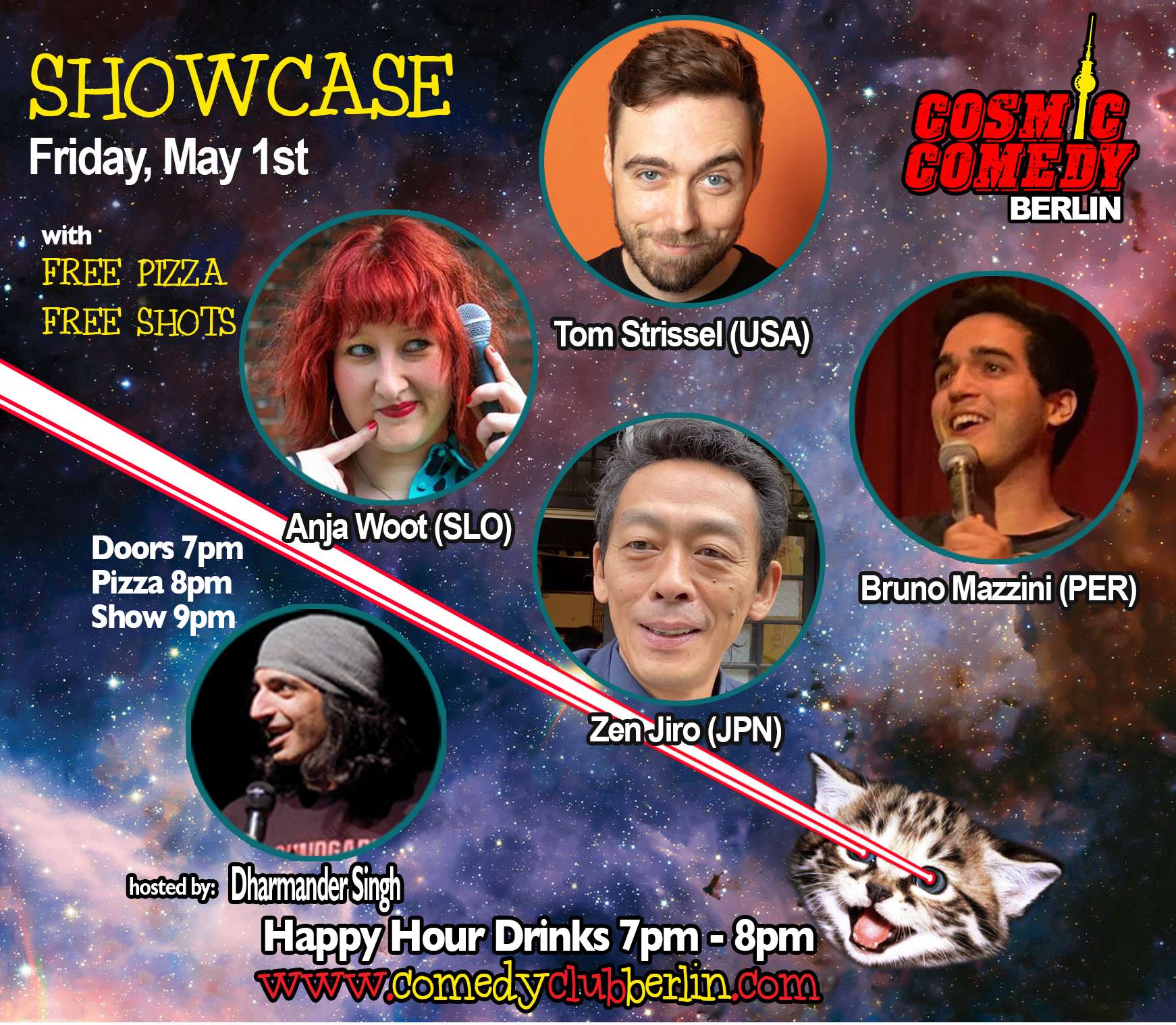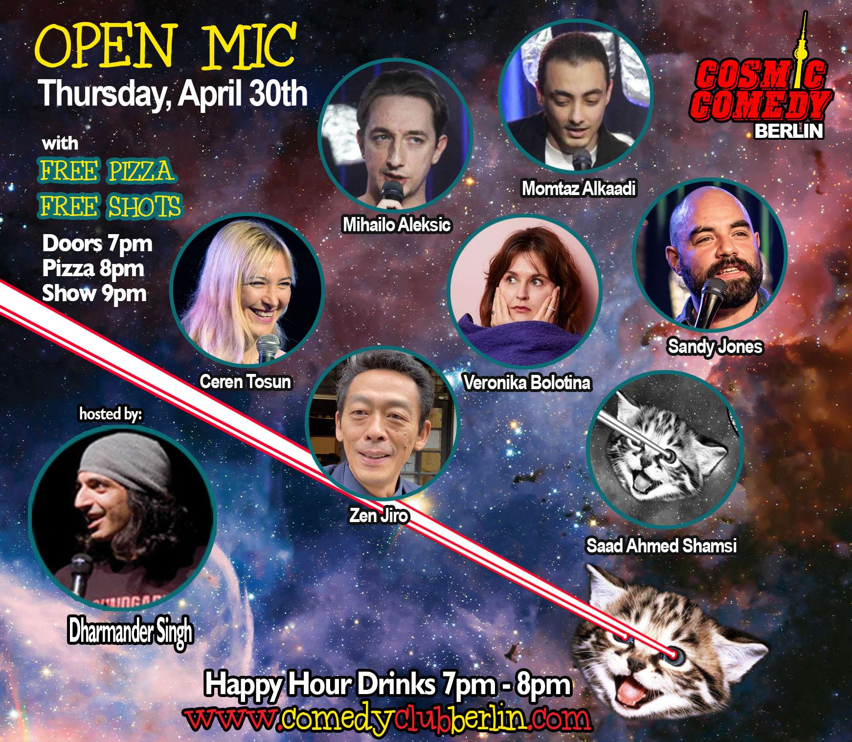 Find one of the longest running English speaking comedy clubs in Berlin Prenzlauer Berg! Indulge in a fantastic evening with stand-up comedy, pizza and shots! It’s Open-Mic…